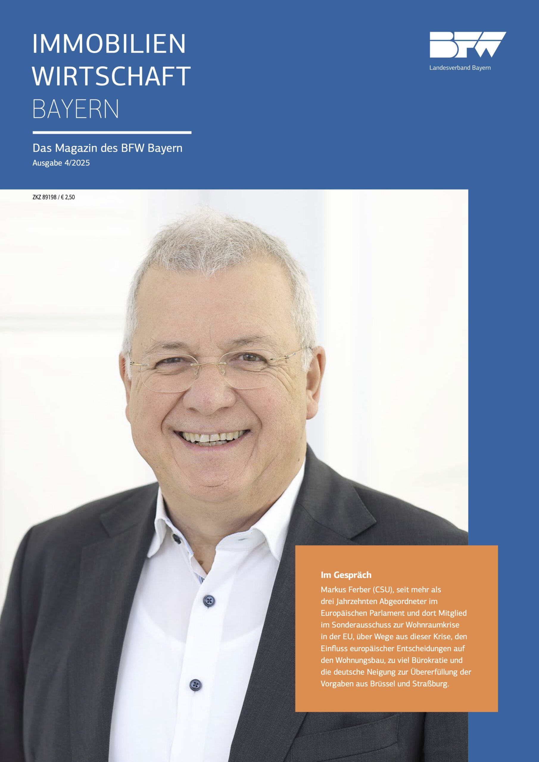 Mit IMMOBILIEN WIRTSCHAFT BAYERN publiziert der BFW Bayern ein etabliertes Fachmagazin der bayerischen Immobilienbranche. Vierteljährlich werden die Leser über aktuelle Themen der Immobilienwirtschaft, politische Aktivitäten sowie über Entwicklungen und Neuerungen innerhalb des Landesverbands informiert. In Interviews und Namensbeiträgen beziehen neben Vertretern des BFW auch regelmäßig namhafte Politiker und Wirtschaftsvertreter Stellung zu aktuellen Themen.