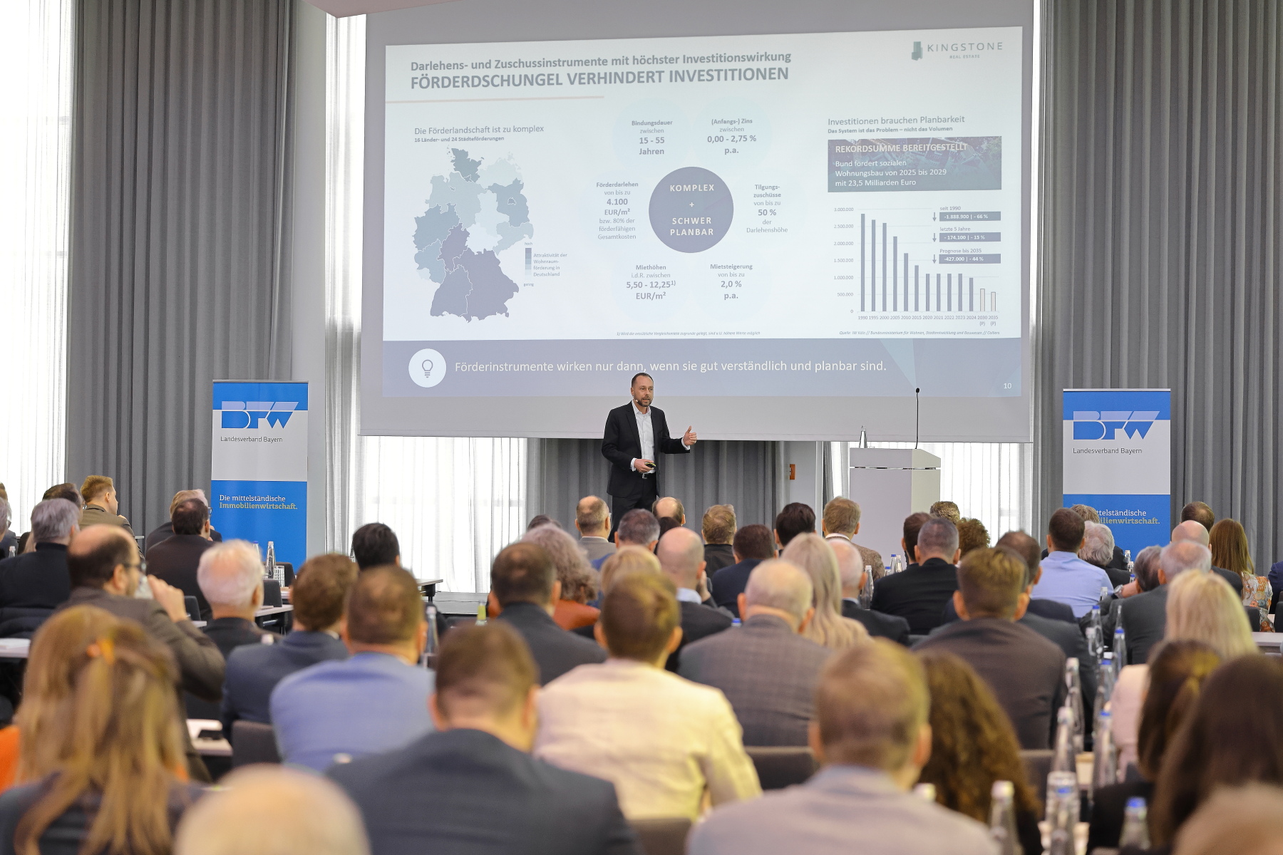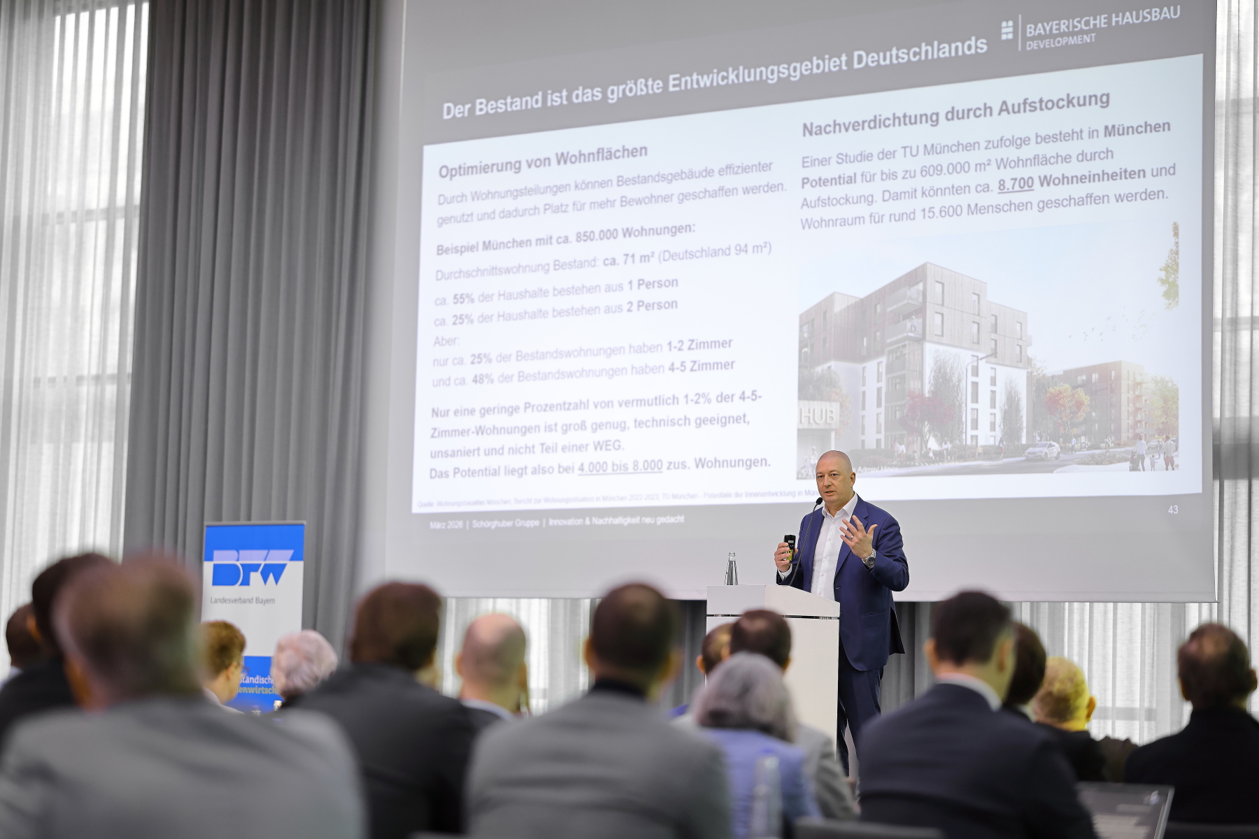 Ein besonderes Augenmerk lag erneut auf der Praxisnähe: In Bayern tätige Unternehmerinnen und Unternehmer teilten ihre Erfahrungen, diskutierten konkrete Projekte und stellten aktuelle Strategien vor – in diesem Jahr mit einem besonderen Schwerpunkt auf Bestandsentwicklung und Werterhalt.